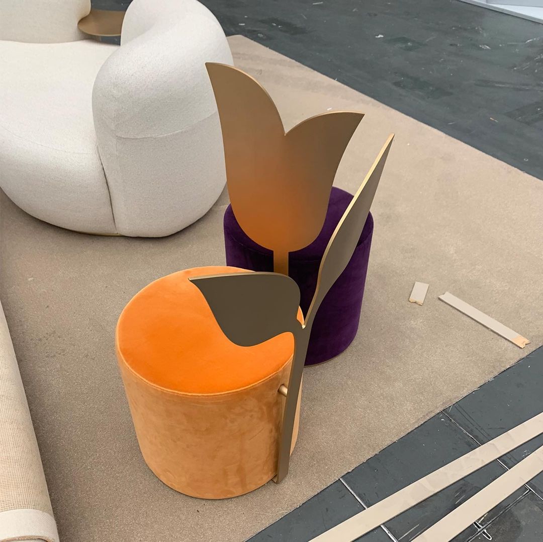 Secolo Ivy Мягкий пуф со спинкой Плющ из сатинированной стали