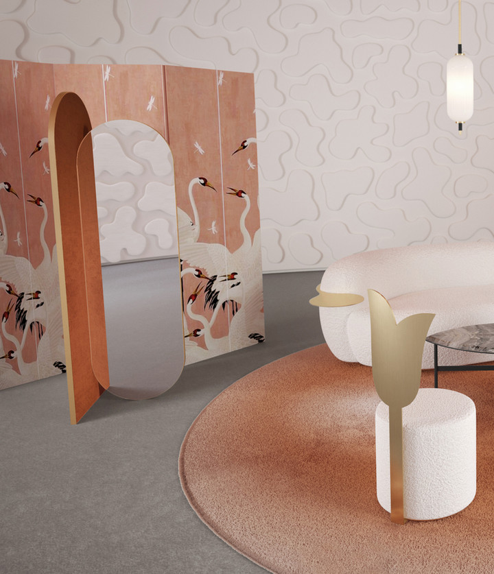Secolo Takada Напольное зеркало с декорированной аркой тканью Standard, инкрустация сатинированная сталь предоставляется с гарантией 12 месяцев с момента покупки.