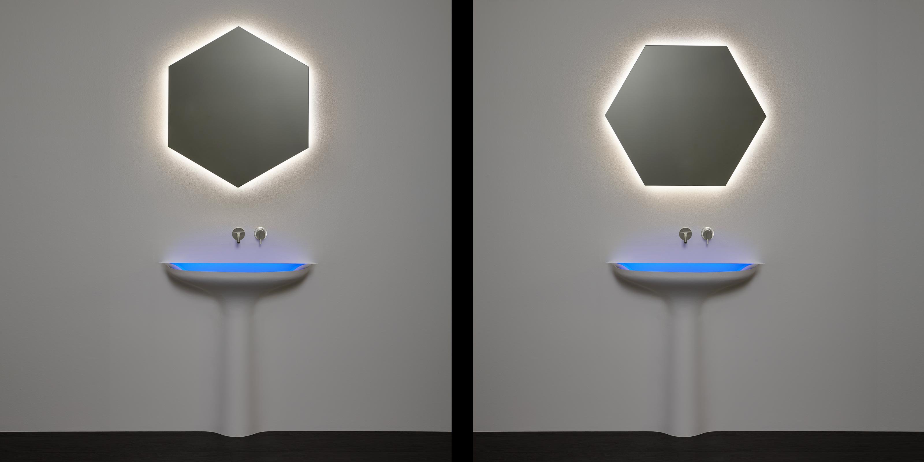 Идеальные геометрические формы, простые и почти неземные фигуры, которые будто колеблются на стене. Шестиугольник Modulo6 и восьмиугольник Modulo8 создают коллекцию, способную удовлетворить различные эстетические требования. Доступные со светодиодной подсветкой или без нее, эти зеркала идеально сочетаются как с современными интерьерами, так и с элементами ретро или буржуазной атмосферой. Некоторые геометрические формы напоминают старинные формы, характерные для внутреннего убранства зеркал, керамики и других элементов интерьера ванных комнат.