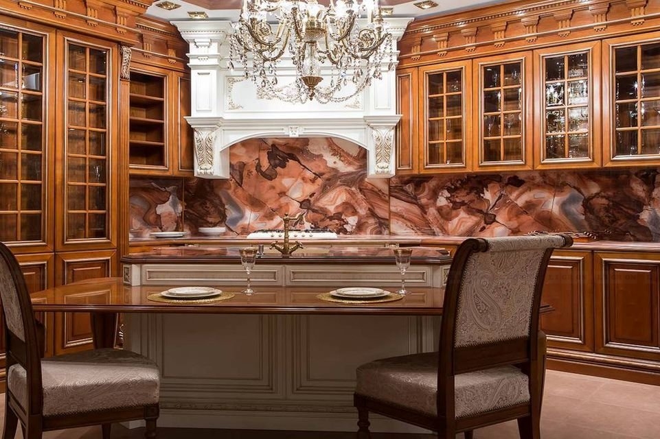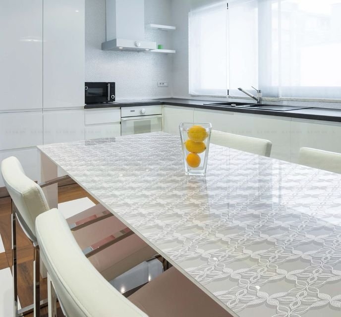 Стекло зеркалит, визуально увеличивая размеры помещения, расширяя пространство. Это ключевой момент в дизайне малогабаритных кухонь и дополнительный плюс в оформлении больших просторных помещений.