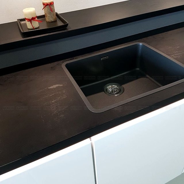 Предлагаются врезные мойки в один уровень со столешницей снизу (только компания Ligron врезает мойки в один уровень со столешницей из ламината снизу. Причем гарантия на все виды врезки моек – 5 лет). В один уровень со столешницей можно врезать разделочный элемент из кварца или керамики.