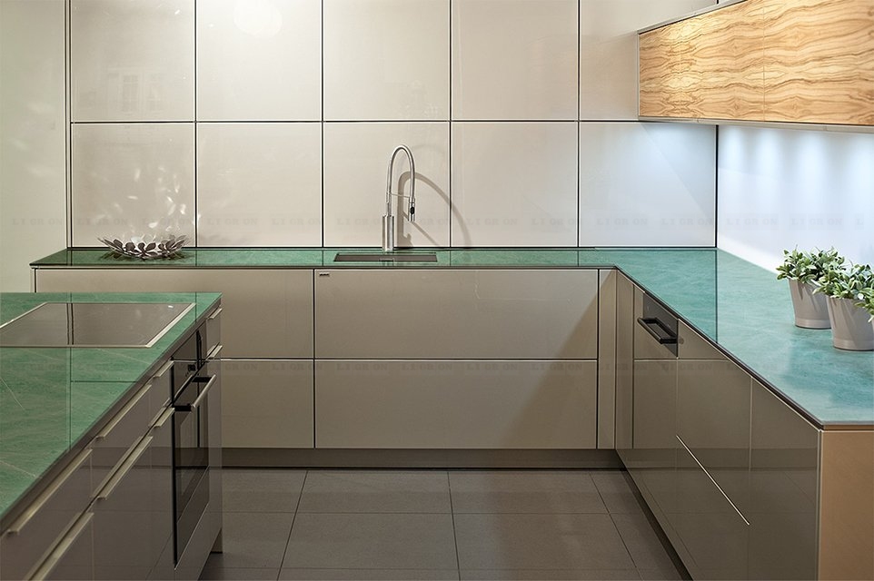 Возможность размещения в зонах сильного нагрева или непосредственно за газовой варочной поверхностью. Лучшая альтернатива неустойчивым к сильному нагреву материалам, таким как искусственный камень.