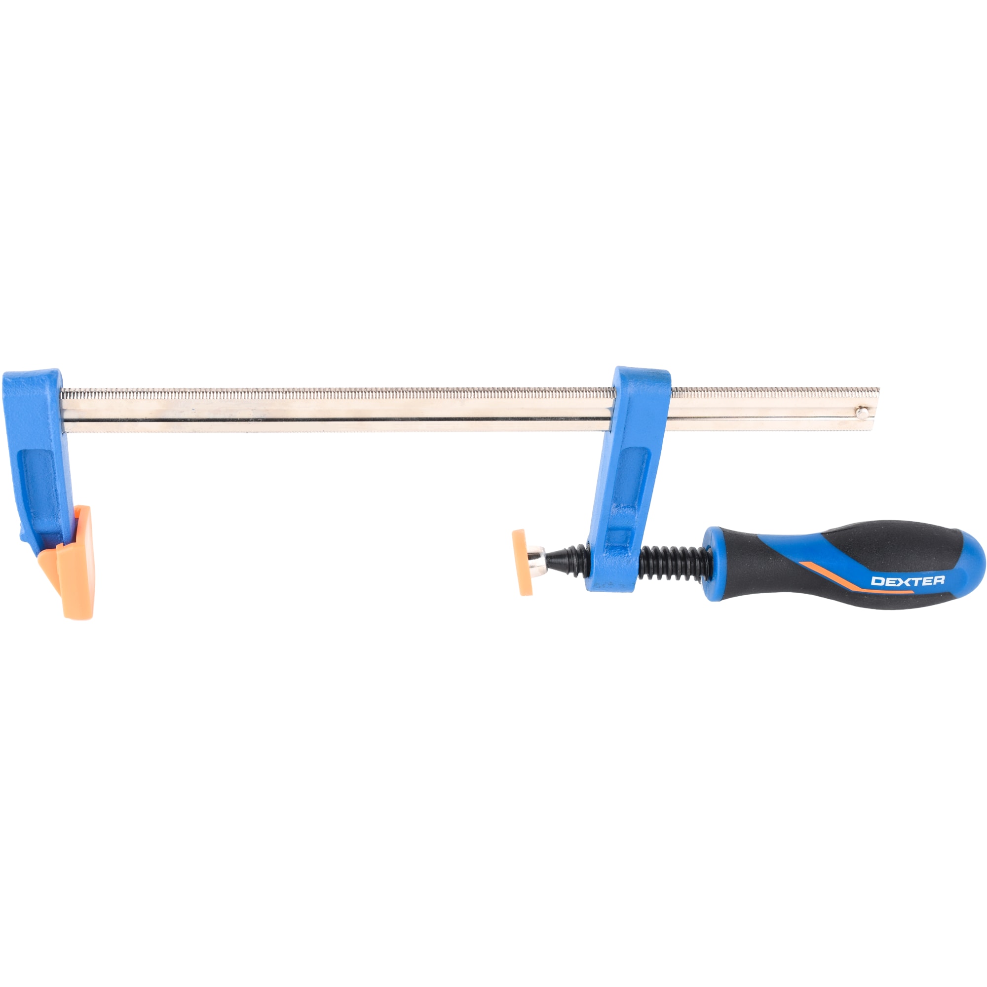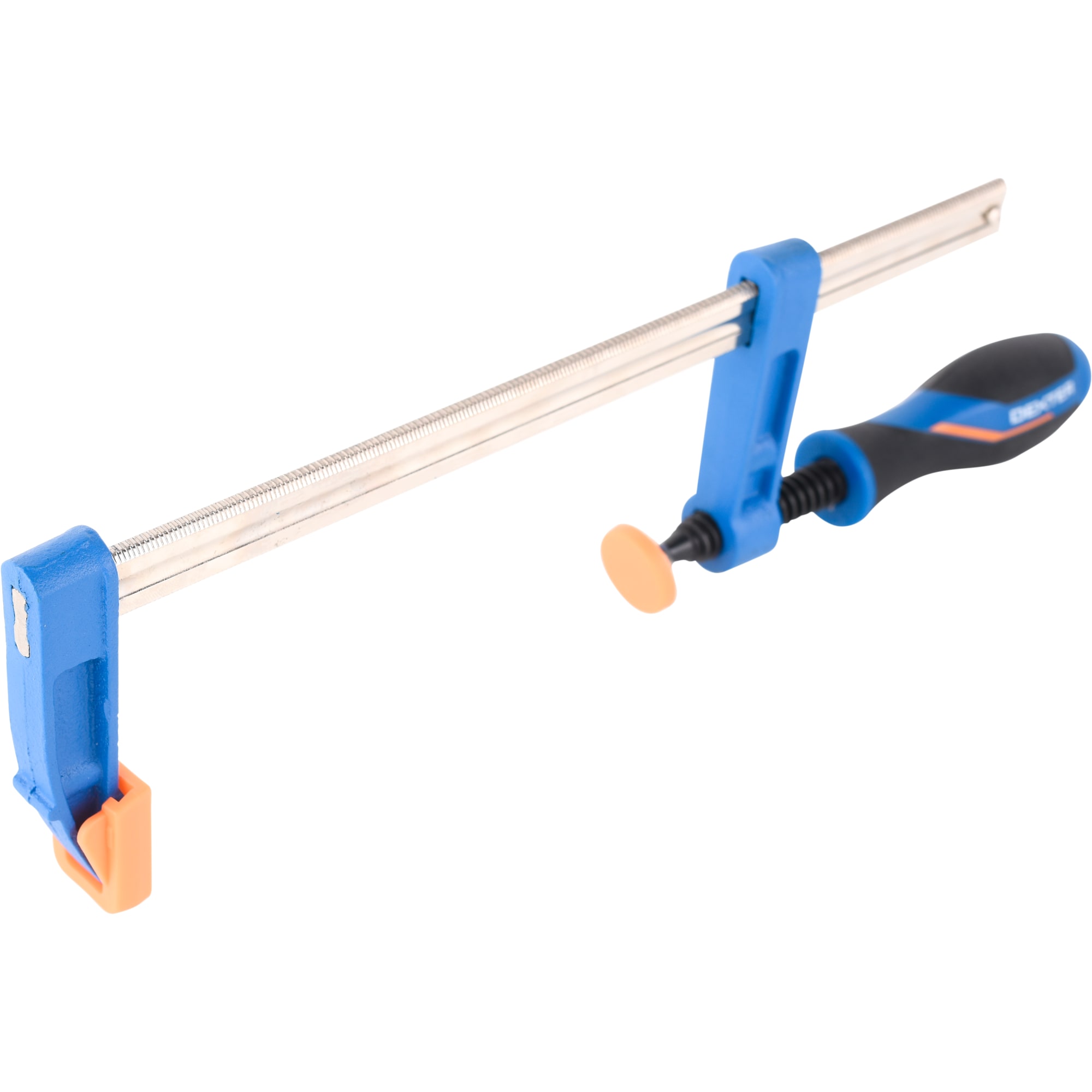 F-образная струбцина Dexter обеспечивает прочное крепление деталей при различных видах обработки и сборки. Идеальный инструмент для мастеров, требующий точности и надежности.
