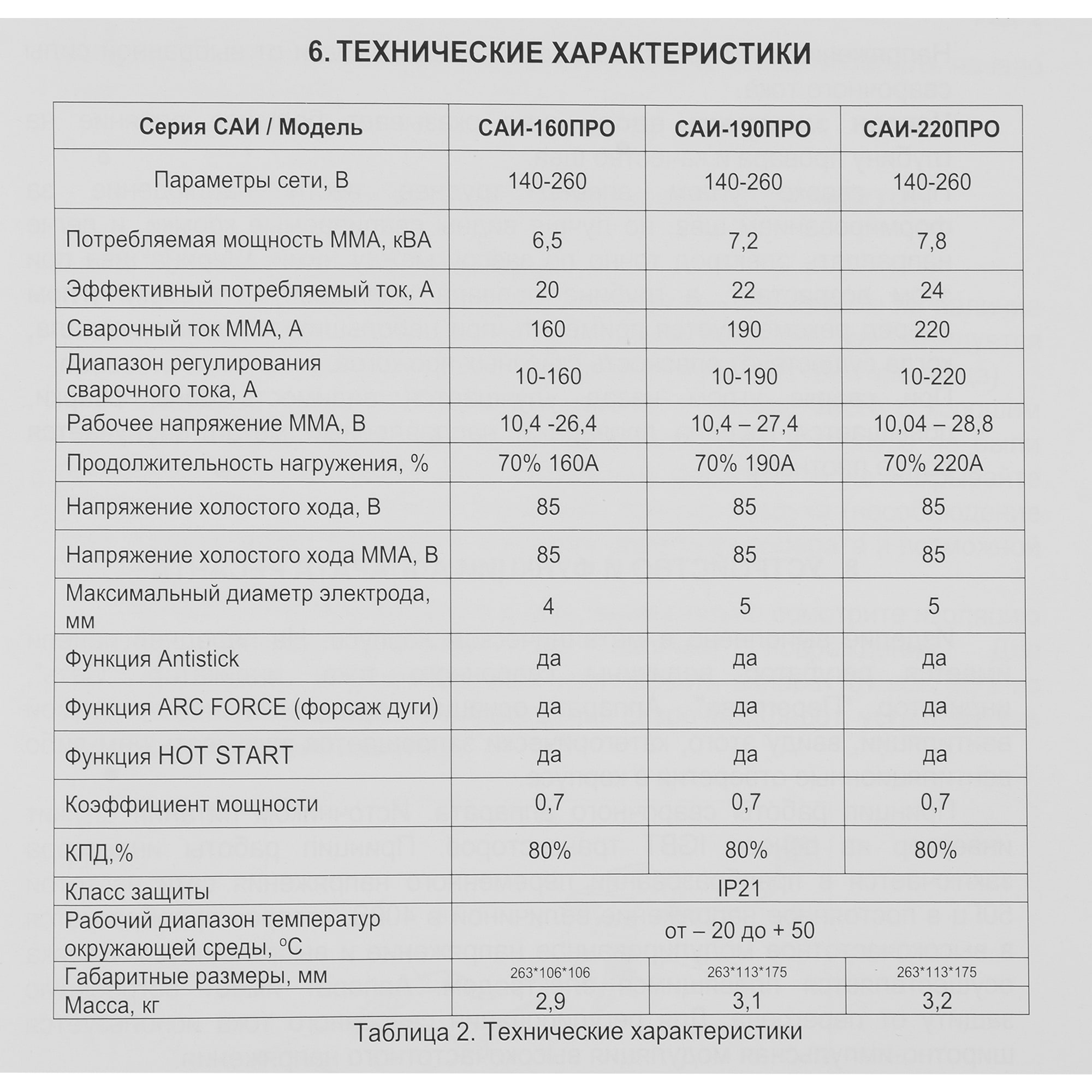 | Максимальный ток для MMA ... | 190 |
