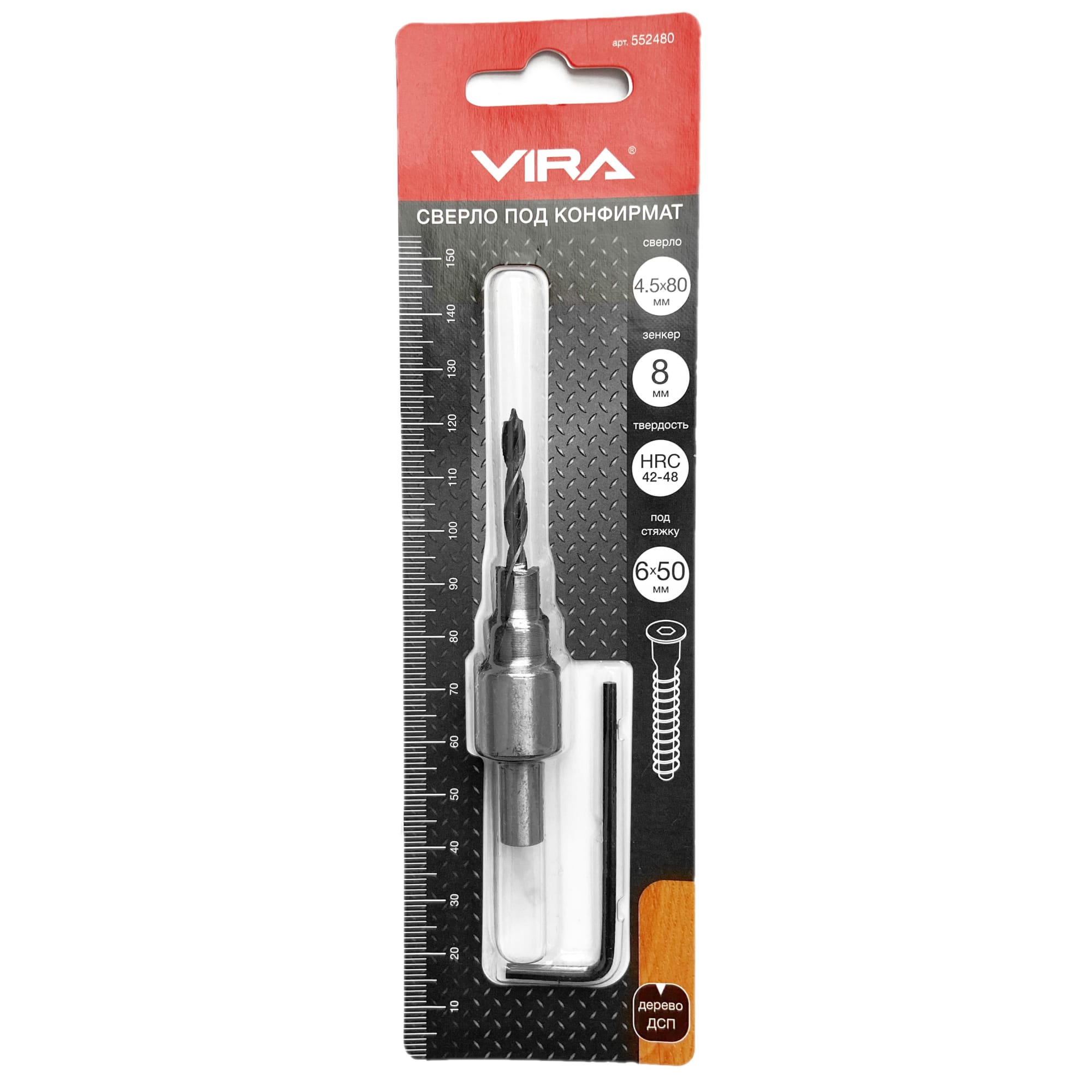 Специализированное сверло VIRA создано для быстрого и качественного формирования отверстий под конфирматы при сборке корпусной мебели.
