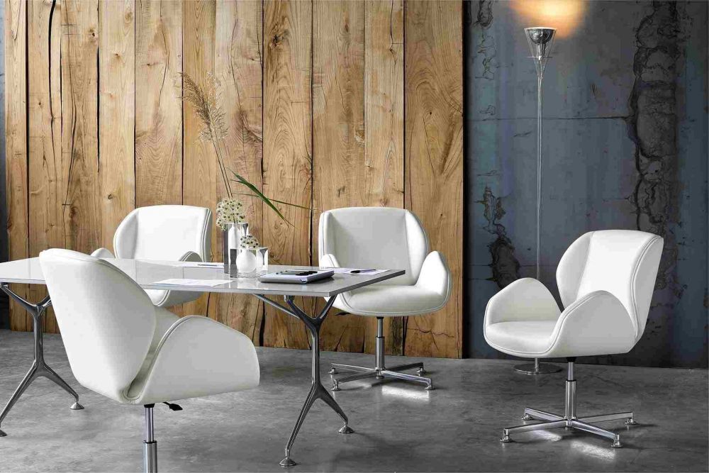 Стул гостевой с деревянным или мягким каркасом. Поворотное основание с 4 или 5 спицами, с роликами или ножками.